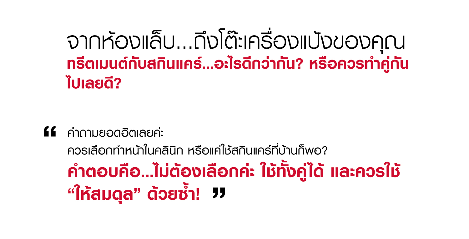 - ทรีตเมนต์ที่คลินิก เปรียบเสมือนปุ่มรีเซ็ต—ตรงจุด เข้มข้น และแก้ปัญหาได้จริง