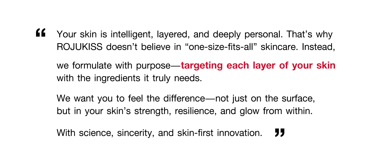 ROJUKISS formulations are designed with delivery technology and molecule sizing in mind. It’s not just what you apply—it’s how far it goes.