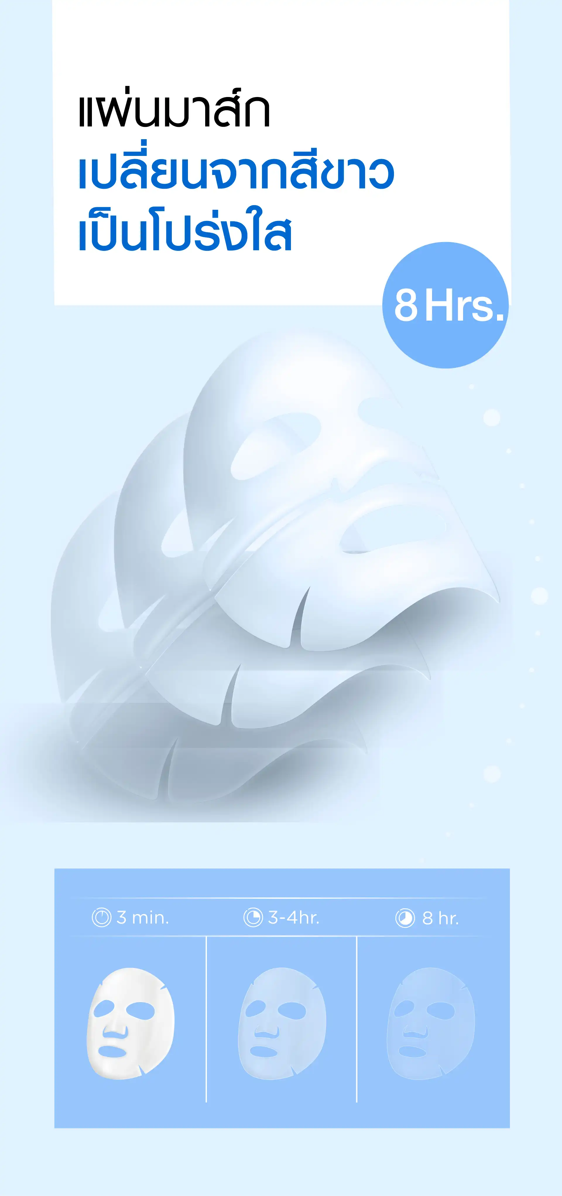 | HOW TO USE | Place the mask sheet on face as the final step of your skincare routine. Leave it on overnight, allowing the active ingredients to gradually absorb into your skin as the mask changes from white to translucent. Remove the mask in the morning or leave it on for at least 3–4 hours. |