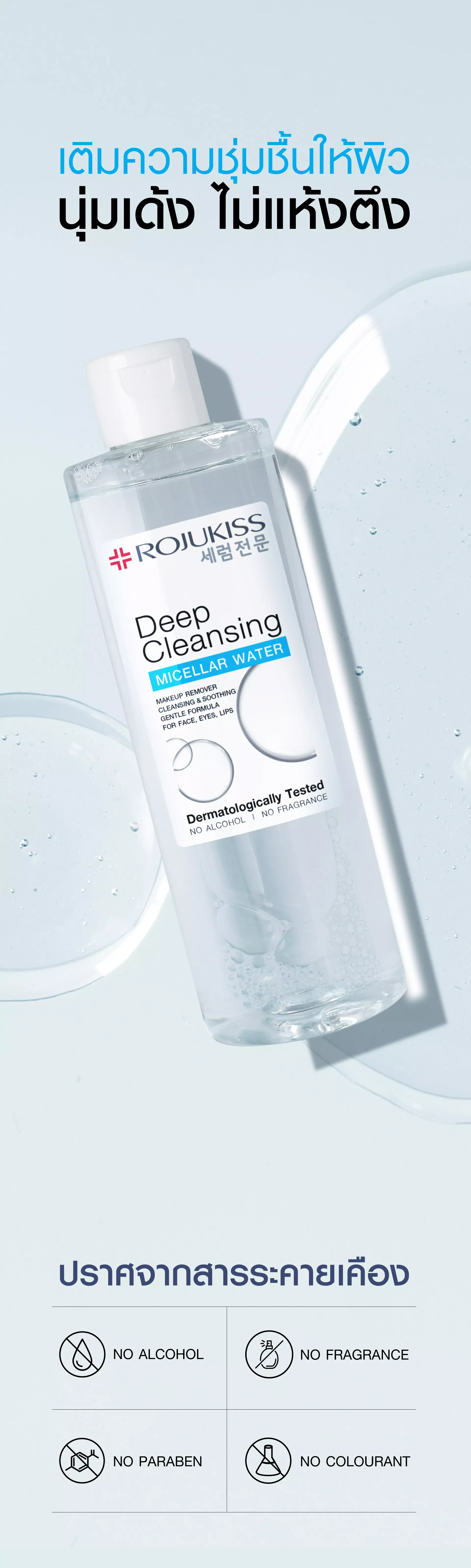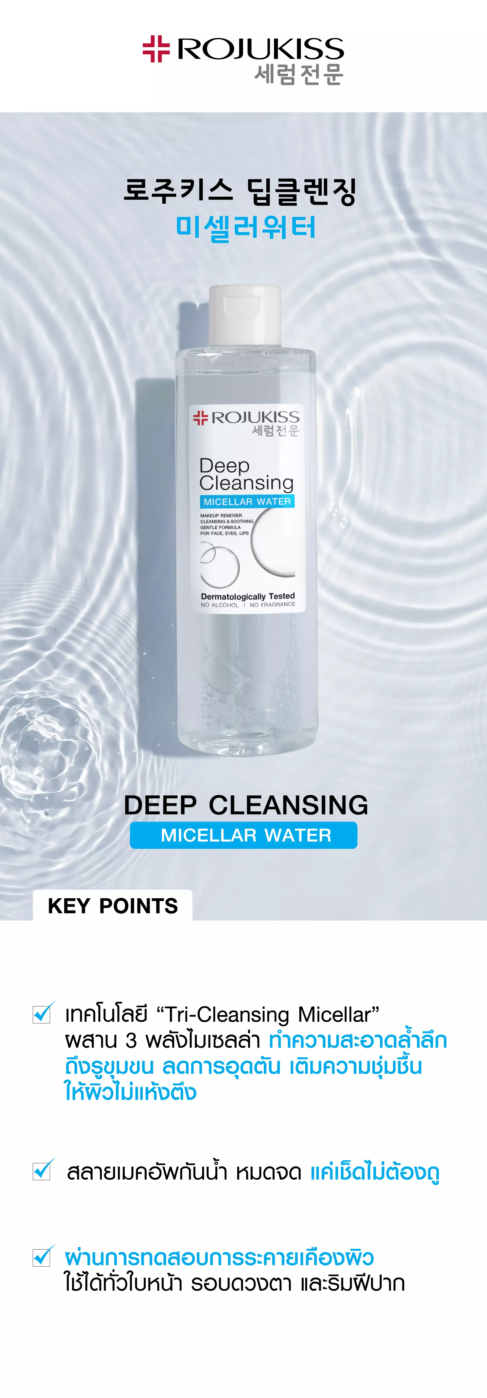 | INFORMATION | Rojukiss Deep Micellar Cleansing Water, gently and thoroughly cleanses, gentle for use on the face eyes and lips |