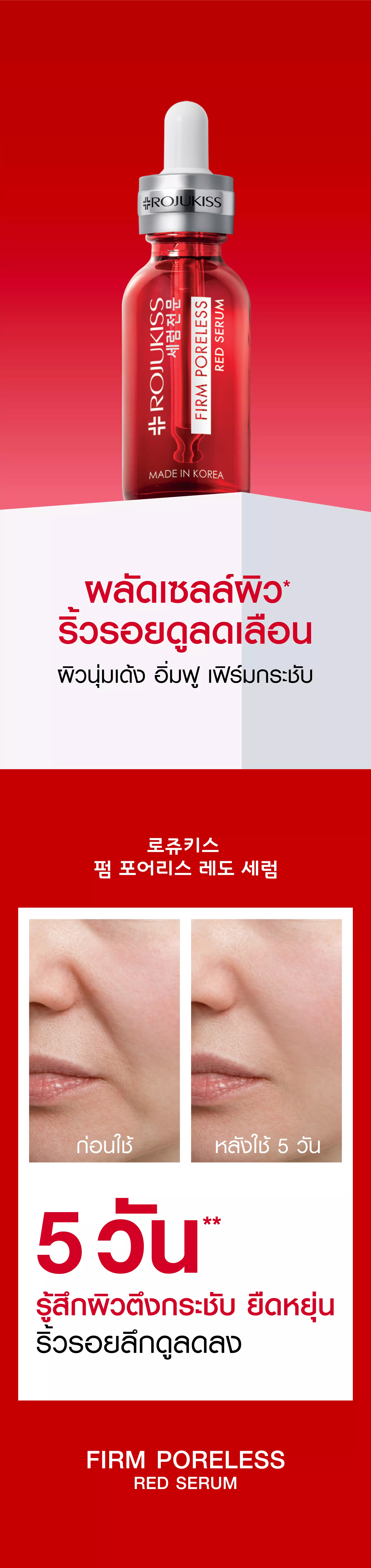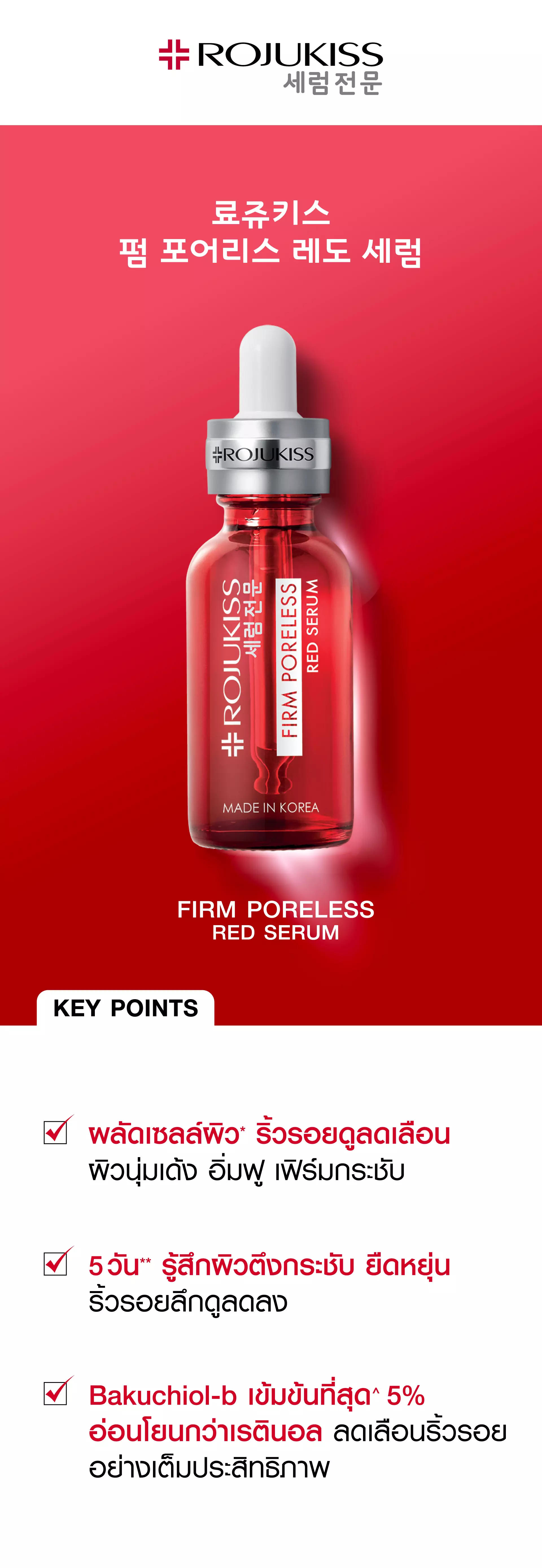 ROJUKISS FIRM PORELESS RED SERUM Firm and elastic skin, deep wrinkles appear reduced, tightened skin, gentle on the skin.