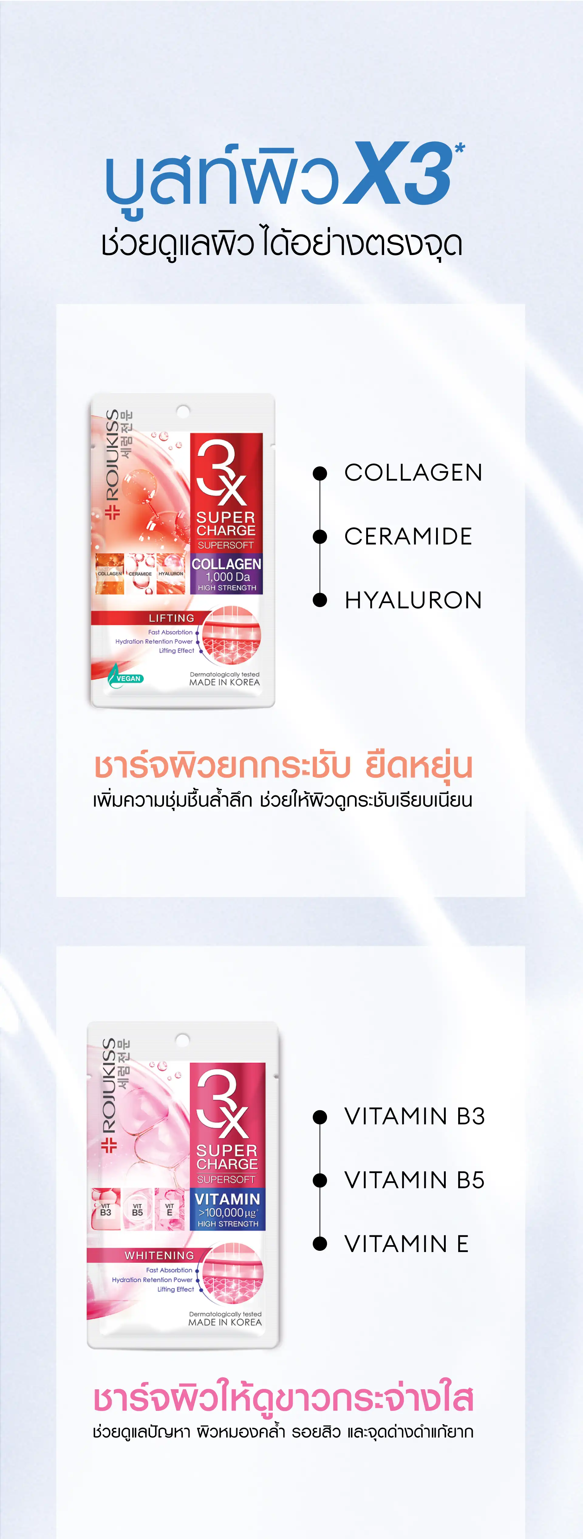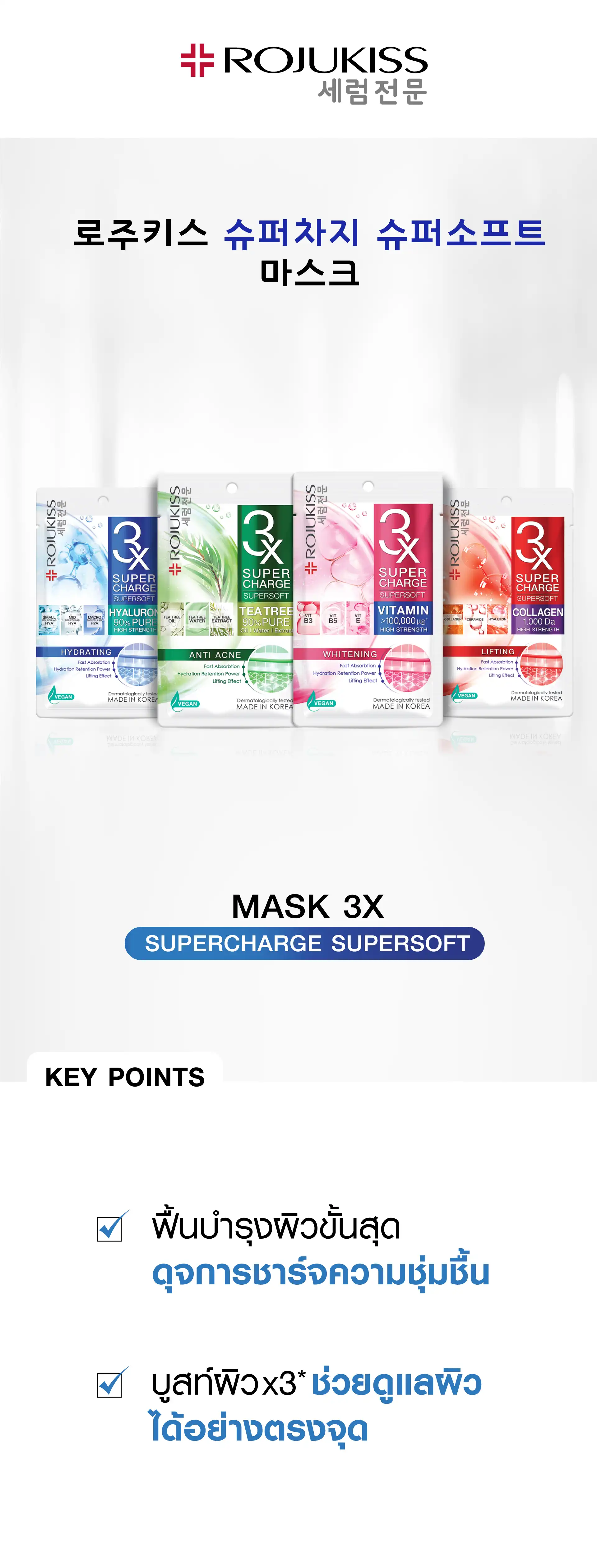 | INFORMATION | ROJUKISS SUPERCHARGE SUPERSOFT LIFTING MASK ROJUKISS SUPERCHARGE SUPERSOFT WHITENING MASK ROJUKISS SUPERCHARGE SUPERSOFT ANTI ACNE MASK ROJUKISS SUPERCHARGE SUPERSOFT HYDRATING MASK |