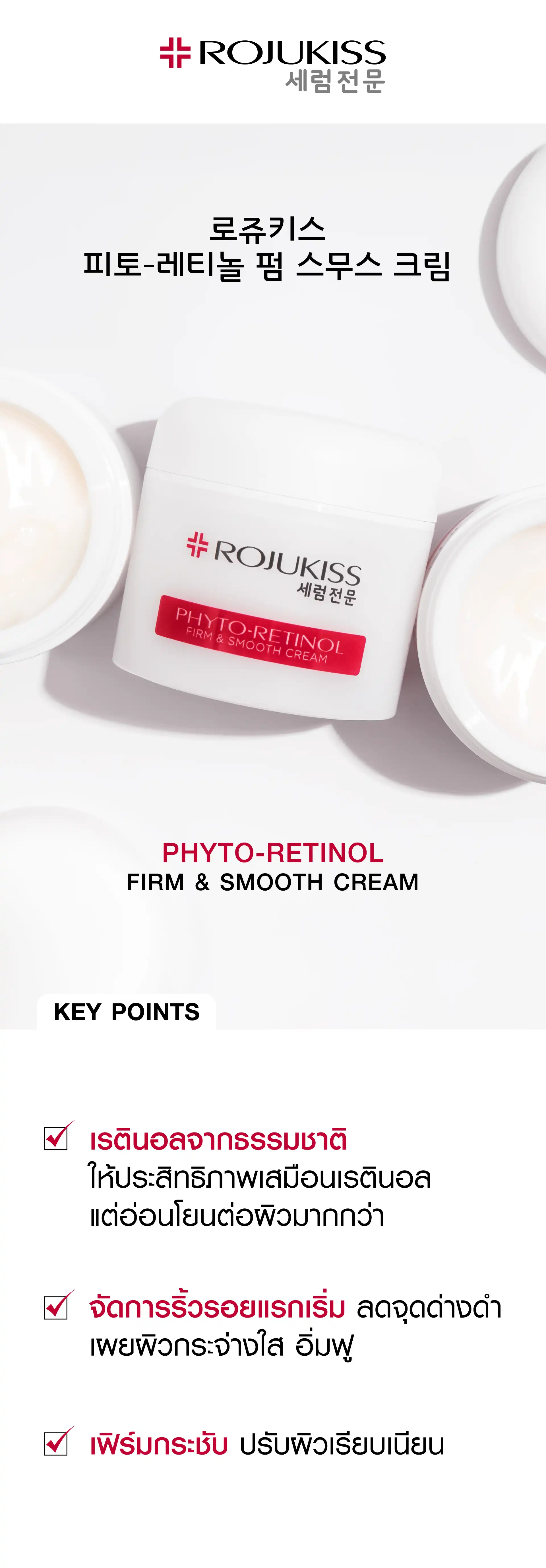 ROJUKISS PHYTO-RETINOL FIRM & SMOOTH CREAM fades dark spots, smooths texture, and reveals radiant