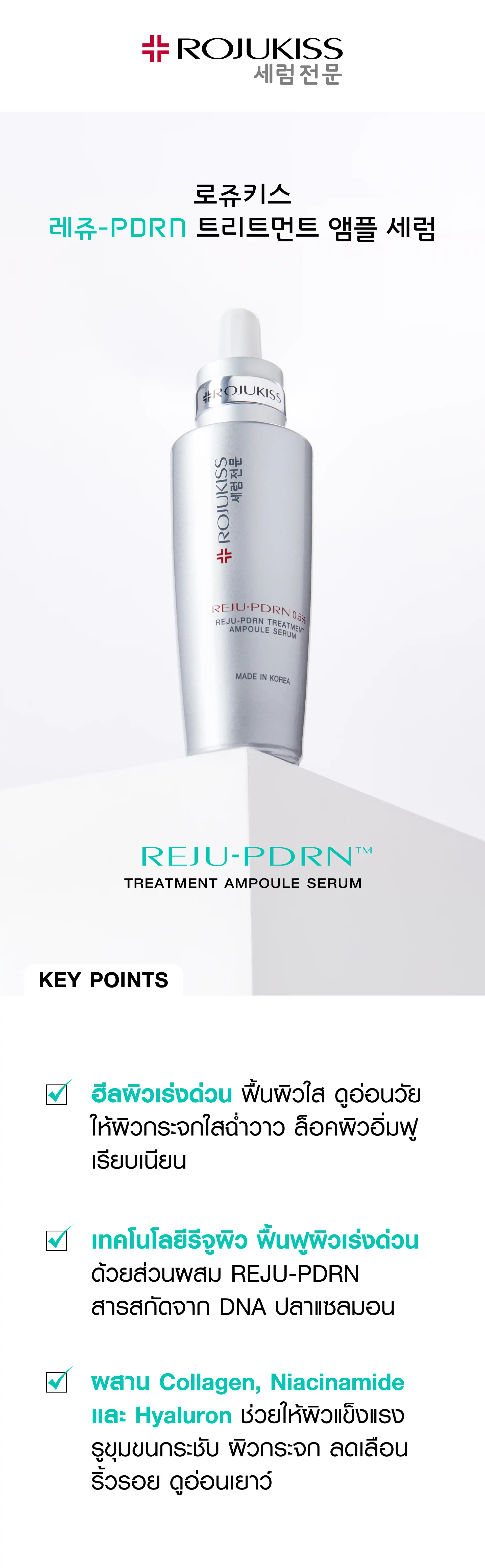 | INFORMATION | Inspired by the trending skin-repair technology popular in both Korea and Thailand, Rojukiss has developed an intensive treatment ampoule designed to rapidly heal and rejuvenate the skin. Powered by PDRN, salmon-derived DNA that closely resembles human DNA, this formula is enhanced with Collagen, Hyaluron, and Niacinamide. - Rapid skin recovery for a healthier, smoother appearance with tightened pores |
