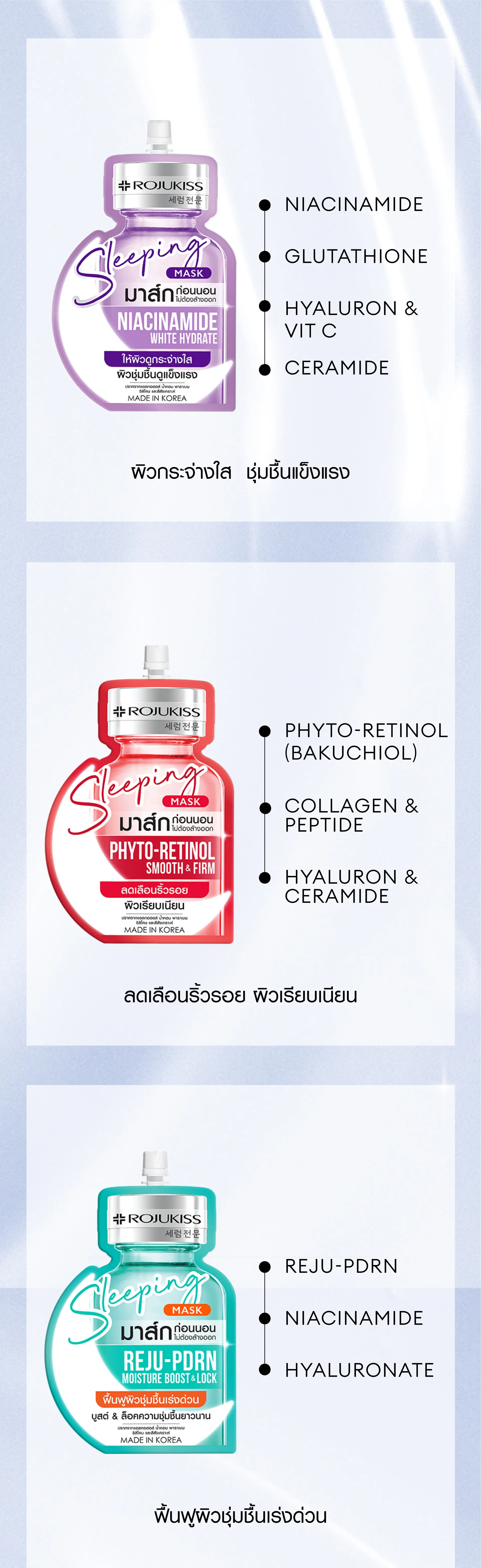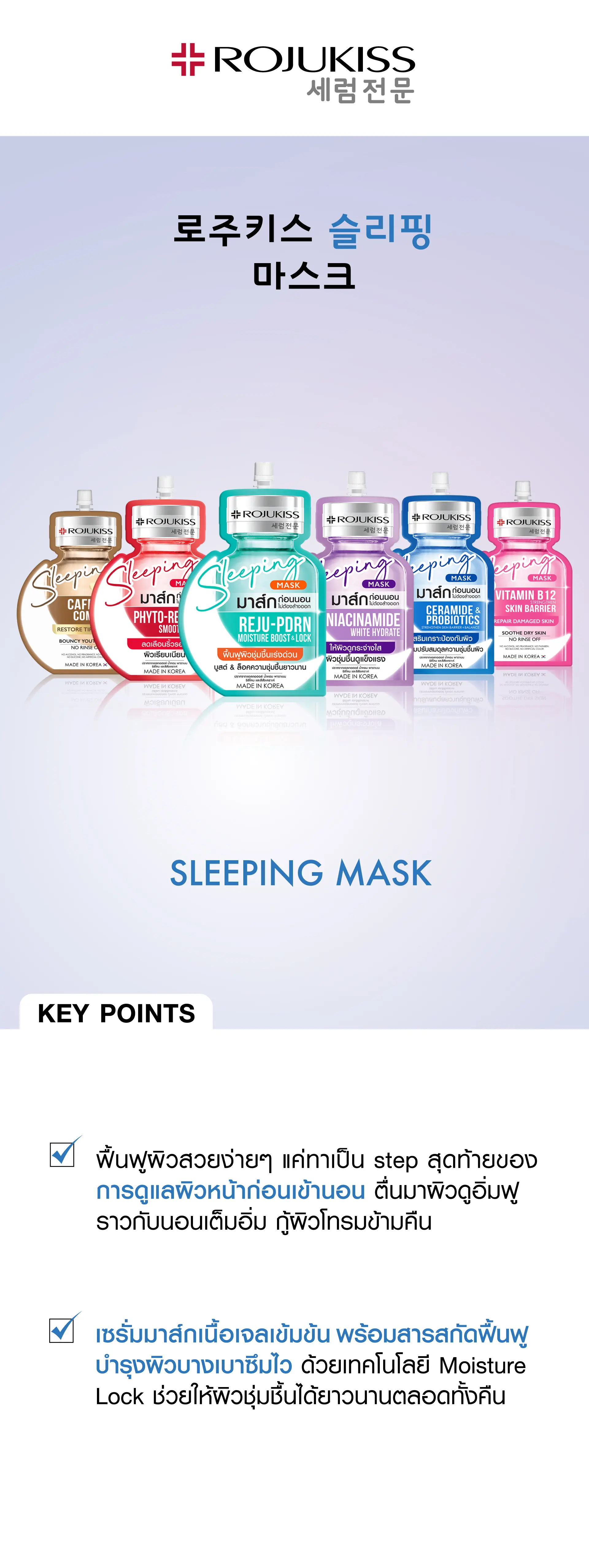 | INFORMATION | ROJUKISS SLEEPING MASK CERAMIDE & PROBIOTICS ROJUKISS SLEEPING MASK NIACINAMIDE ROJUKISS SLEEPING MASK PHYTO-RETINOL ROJUKISS SLEEPING MASK REJU-PDRN ROJUKISS SLEEPING MASK CAFFEINE COMPLEX ROJUKISS SLEEPING MASK VITAMIN B12 |