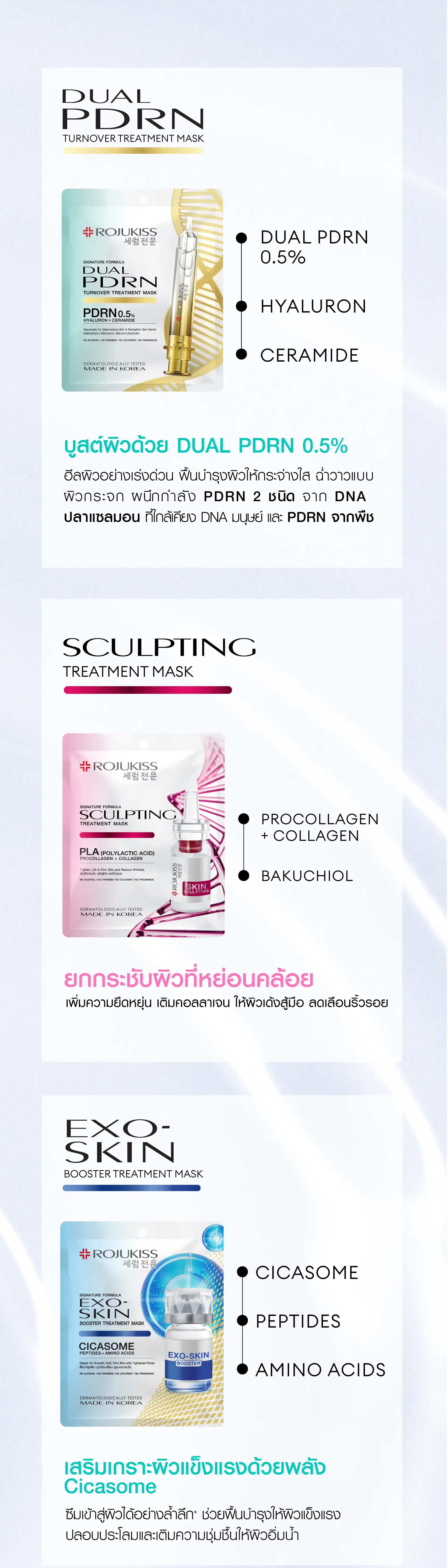 ROJUKISS DUAL PDRN TURNOVER TREATMENT MASK : 10-2-6600034424 ROJUKISS SCULPTING TREATMENT MASK : 10-2-6700001829 ROJUKISS EXO-SKIN BOOSTER TREATMENT MASK : 10-2-6700001828 ROJUKISS VITAMIN SHOT BRIGHTENING TREATMENT MASK : 10-2-6700001991