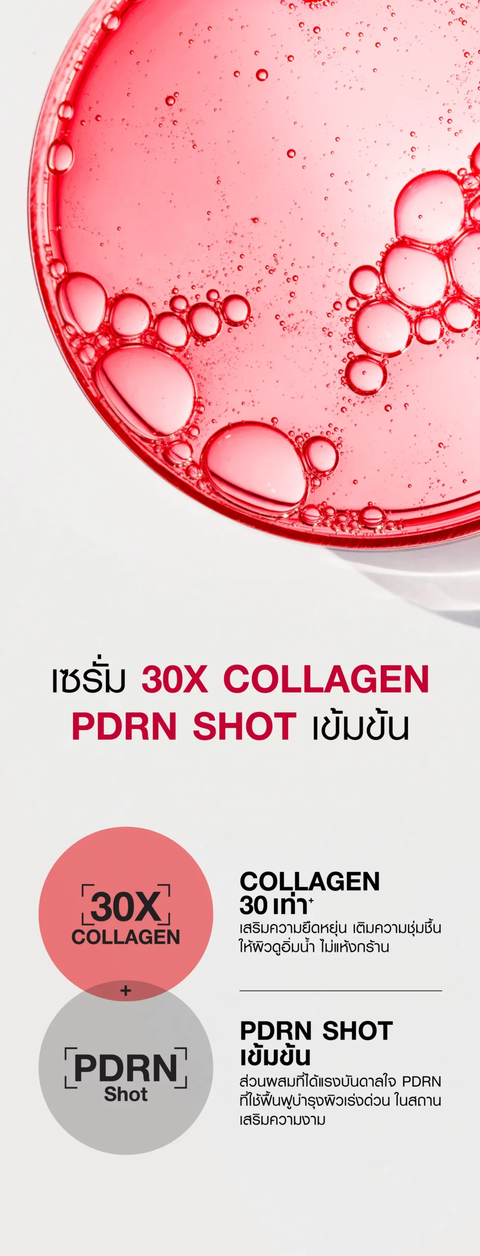 เซรั่ม COLLAGEN PDRN ช็อตเข้มข้น ทาได้ทั้ง หน้า ตา คอ ผสานพลัง PDRN และ 30X คอลลาเจน ช่วยยกกระชับกรอบหน้า ลดรอยตีนกา ยกกระชับถุงใต้ตาใน 1 สัปดาห์ เนื้อบางเบาซึมง่าย