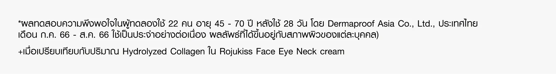 *เมื่อเปรียบเทียบกับปริมาณ Hydroglyzed Collagen ใน Rojukiss Face Eye Neck cream