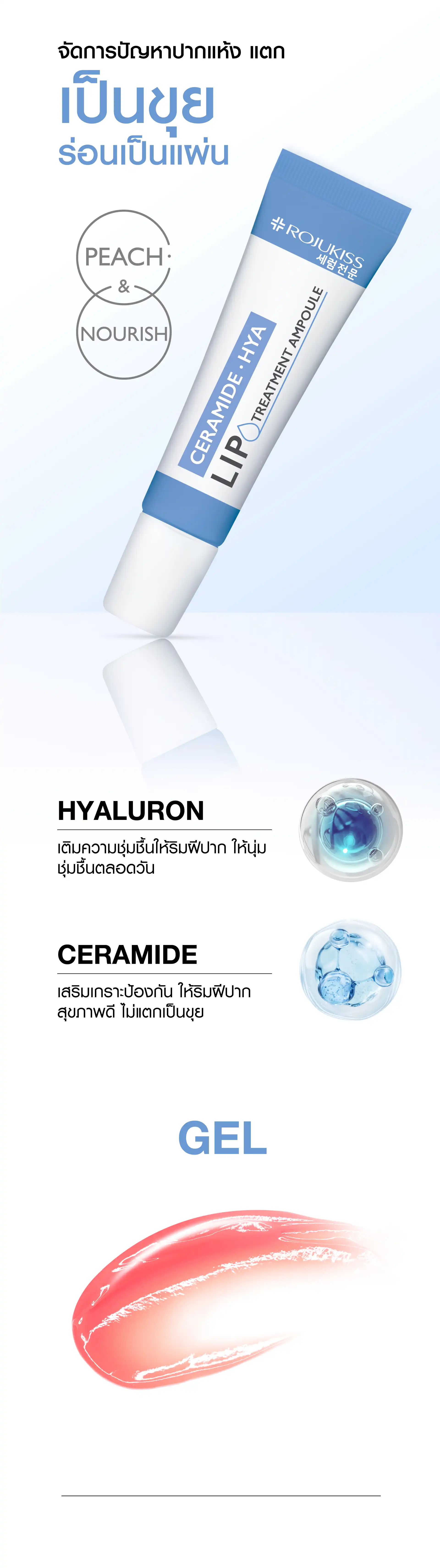 | เลขที่ใบจดแจ้ง | Rojukiss PDRN Filler Lip Ampoule Mask : 11-1-6600026901 Rojukiss Ceramide Hya Lip Treatment Ampoule : 11-1-6600026904 Rojukiss Bright C Lip Ampoule Mask : 11-1-6600025850 |