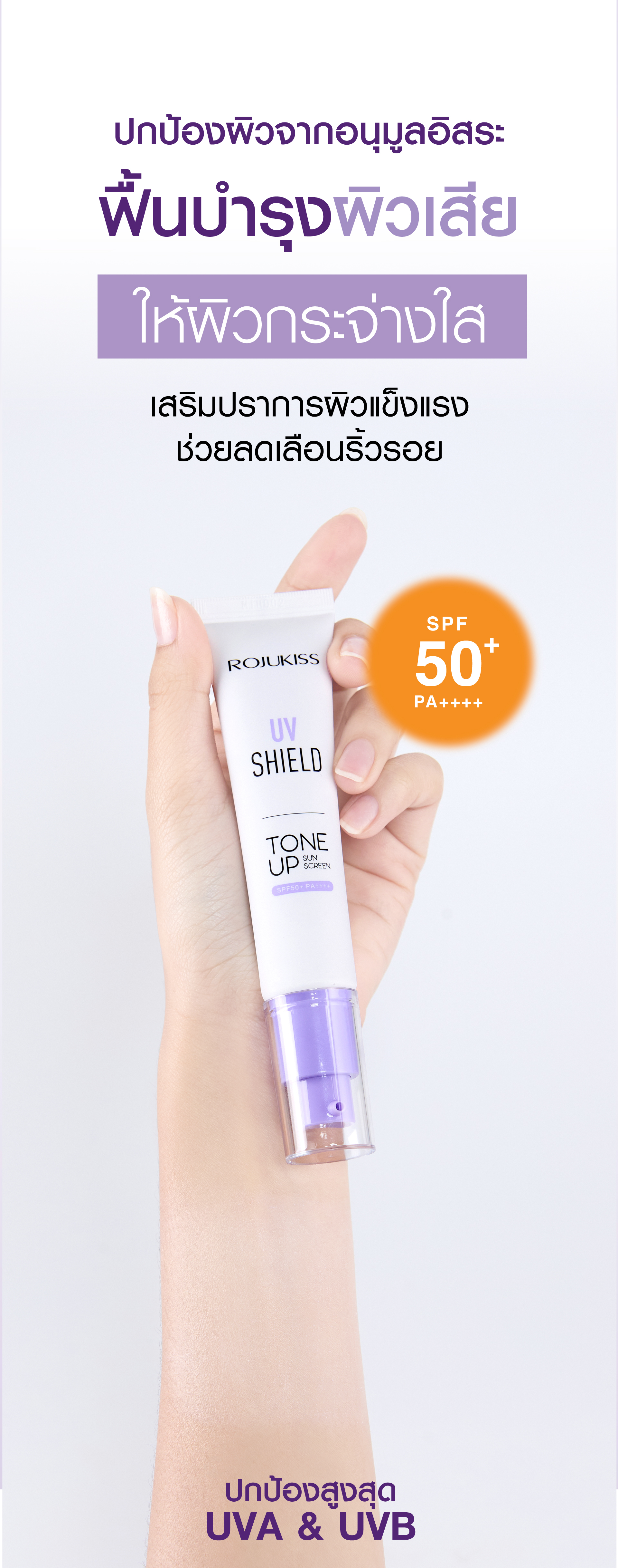 กันแดด Tone up เนื้อม่วง ช่วยลดความเหลืองของผิว ปรับผิวดูขาวกระจ่างใสขึ้นอย่างเป็นธรรมชาติ